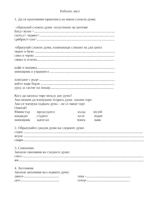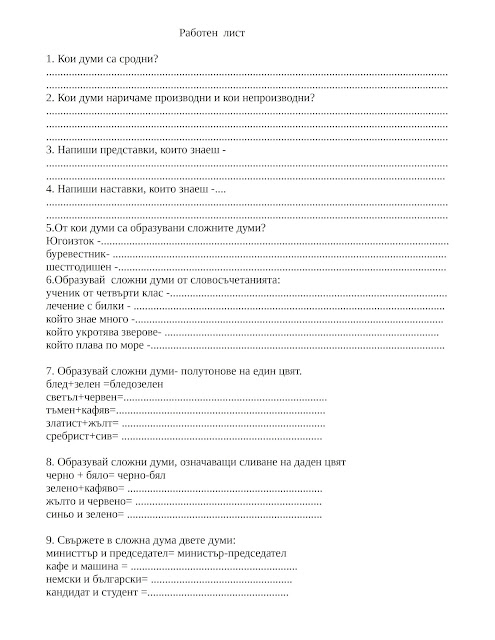 сложни думи 4 клас работен лист